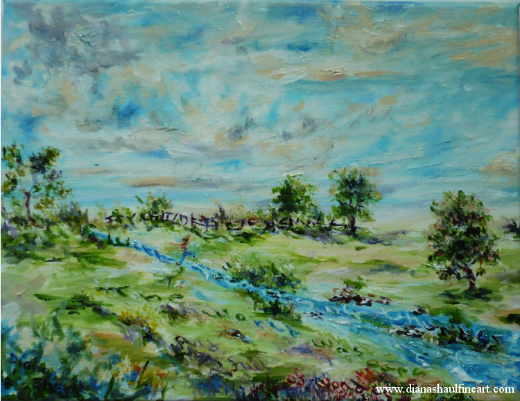 This is a painting about growing up in the English countryside, where the fields go on forever and are yours to explore, with no limits on your adventures, fuelled only by your imagination and this beautiful land.